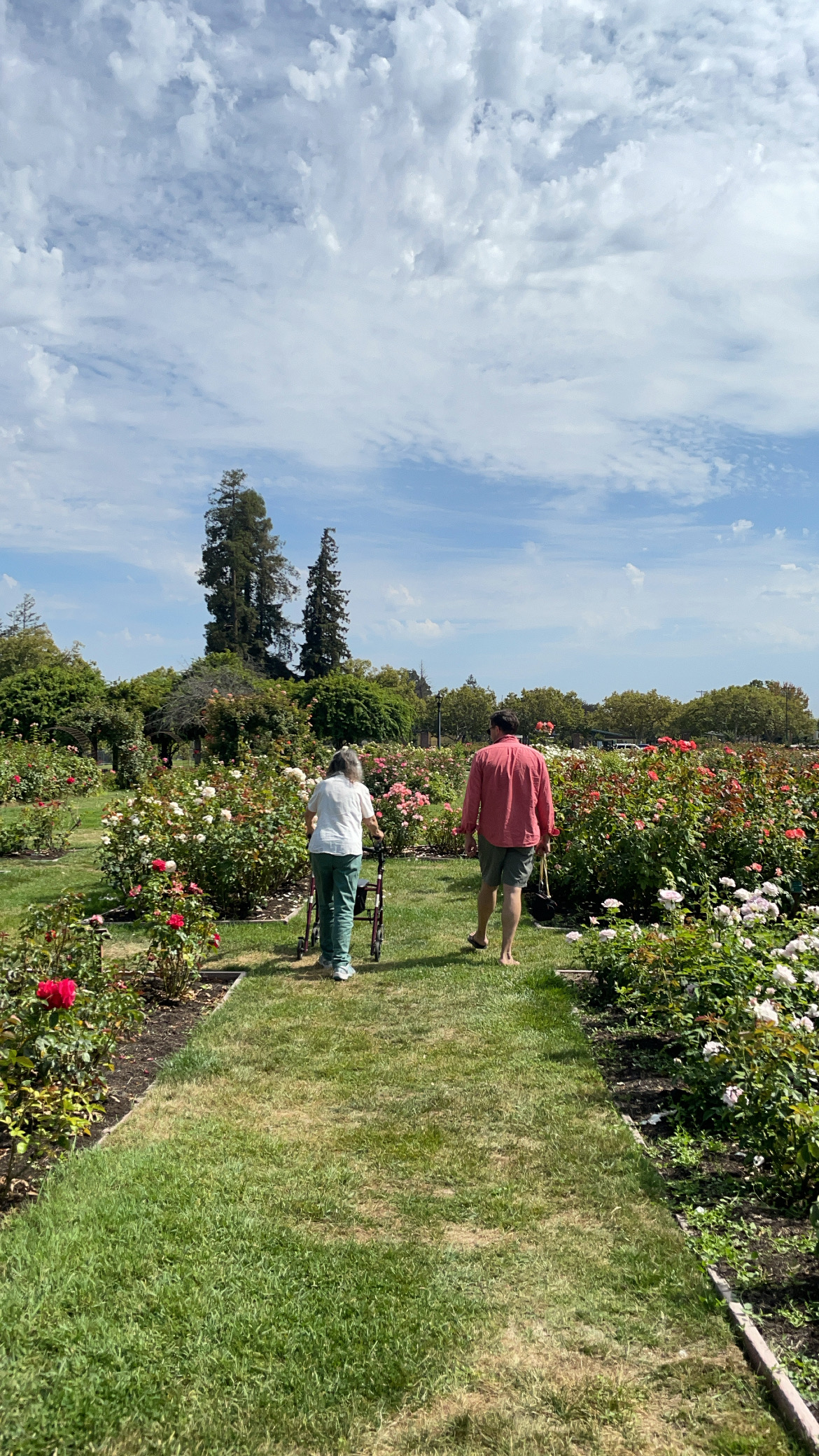 So today I am thinking of the old women in our lives that we’ve lost. When Ben found an eyelash on my cheek this morning and we lazily performed my childhood rites of pinching the eyelash between a finger and a thumb, making a wish, three alternate blows, and one guess as to which finger the eyelash would end up on when he released it, I wished to make a new cool collage today. I even guessed the right finger that the eyelash would end up on: the thumb. But I am not feeling a new piece yet. And I am thinking about grandmas and great aunts and so I uploaded a poster of sorts I had made back in 2023 from the Roses of San Jose series. The series that I started from photos of that lovely day in the Rose Garden with Ben and his grandma. It was so nice just to walk among the roses. It was enough.